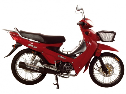 Скутеретта Ringer 110 сочетает в себе экономичность и простоту мопеда, динамику мотоцикла и защищенность скутера. Четырехтактный двигатель объемом 110 см3 сблокирован с четырехступенчатой коробкой передач. «Круговая» схема переключения передач, давшая название модели, чрезвычайно удобна при передвижении в городском режиме. Узкая и легкая скутеретта с автоматическим центробежным сцеплением позволяет уверенно маневрировать между рядами автомобилей. Спицованные колеса, установленные на модели, более практичны при передвижении по дорогам с плохим покрытием. Передний дисковый и задний барабанный тормоза позволяют водителю в любой ситуации сохранять контроль над машиной. Защита цепи и картера улучшает эксплуатационные качества скутеретты, а защита на глушителе поможет избежать случайных ожогов. Места для перевозки вещей расположены по всей машине: большая багажная корзина спереди, багажник для негабаритных вещей между рулевой колонкой и седлом, стальной багажник сзади. Скутеретта Ringer 110 проста в управлении и надежна. Электростартер добавляет удобства при эксплуатации.